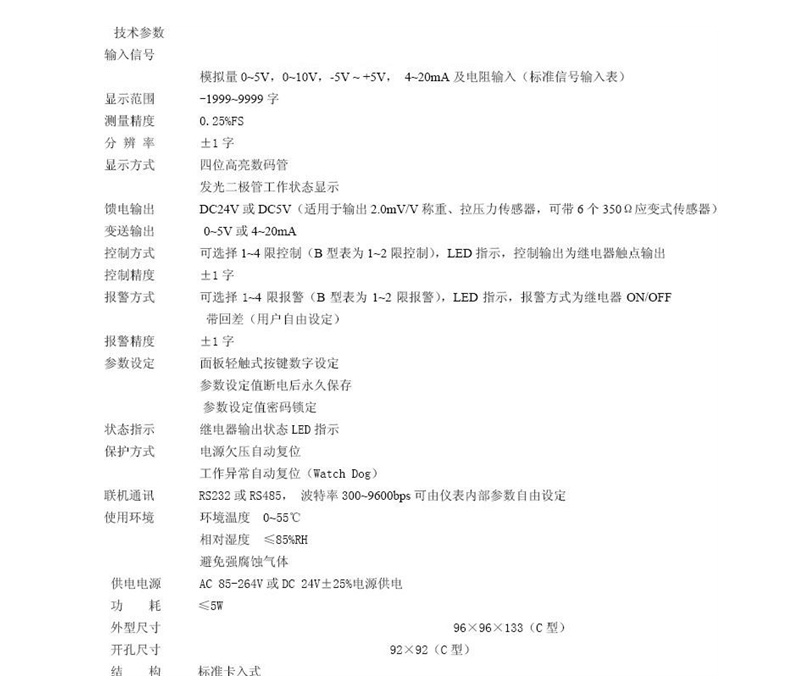 Signal input : 0~5V;0~10V;0~±5V;4~20mA;0~5kΩ;0~10kΩ