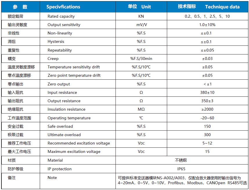 NS-TH5 系列稱重傳感器,采用優(yōu)質(zhì)鋁合金制作;