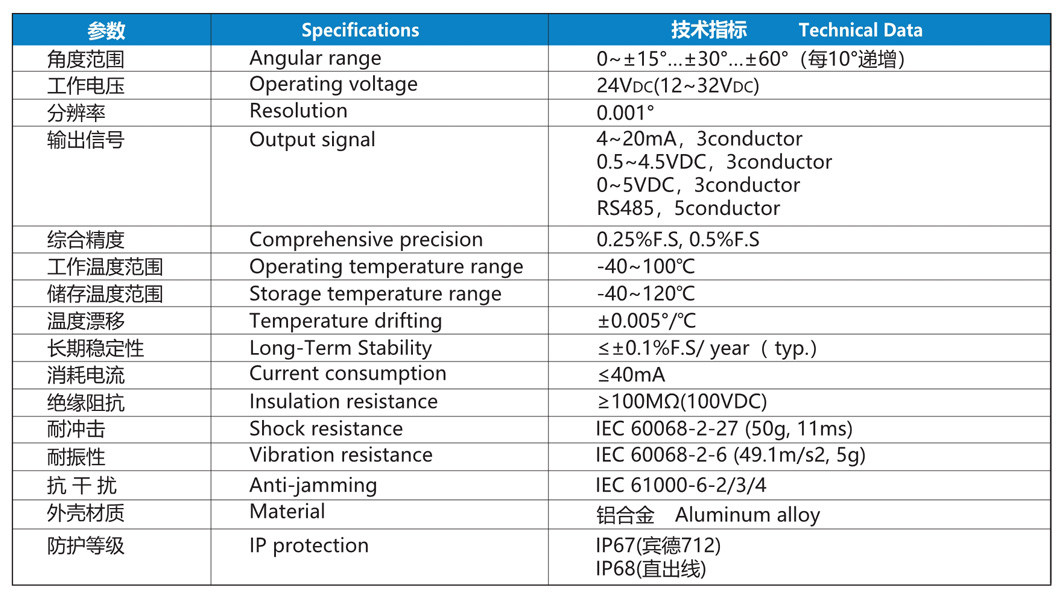 測量角度最大達(dá)±60°,分辨率達(dá)到0.001°