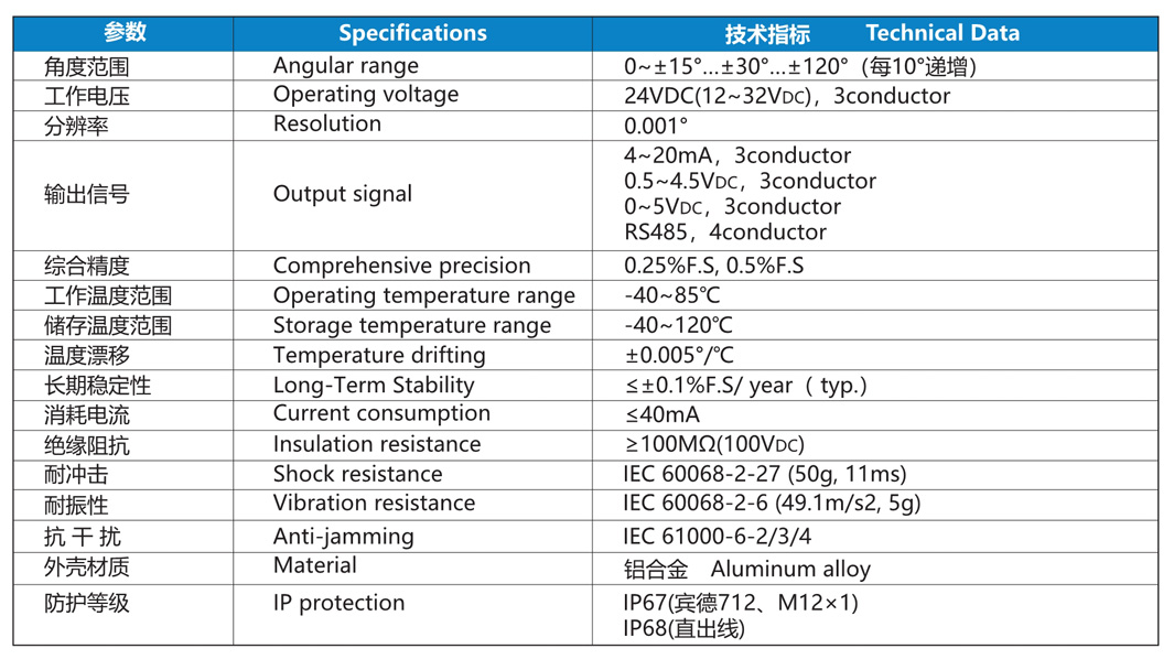 測(cè)量角度最大達(dá)±60°,分辨率達(dá)到0.001°